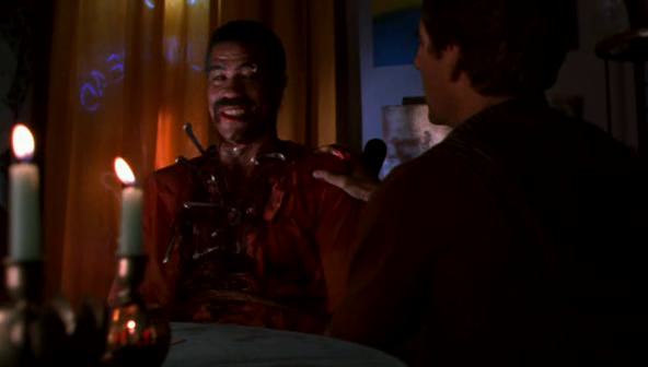 This movie is about a private investigator sent on a job in Los Angeles to find a tax evader. Yes he does find him but from that point on there is nothing but ghoulish terror afterwards. Scott Bakula plays the private detective which caught me off guard due to the fact I only remembered him from the Quantum Leap series which he played a time traveler trying to save people from tragedy. Now, this movie he is trying to save people from tragedy but it does not work when you are against illusionist and people using dark magic to corrupt and destroy everything in its path. Harry (Bakula) follows his mark to a fortune teller who has been brutally tortured by a member of a cult that existed many years before this point. This man is destroying all the people who killed his leader in order to resurrect his leader named Nix a powerful illusionist who was sent to destroy the world. After Nix’s student Swann betrays him because he knows Nix was going to sacrifice a young girl for ultimate power the cult is decidedly upset but not as much as Butterfield a sadist with a pension for sharp objects and human flesh.