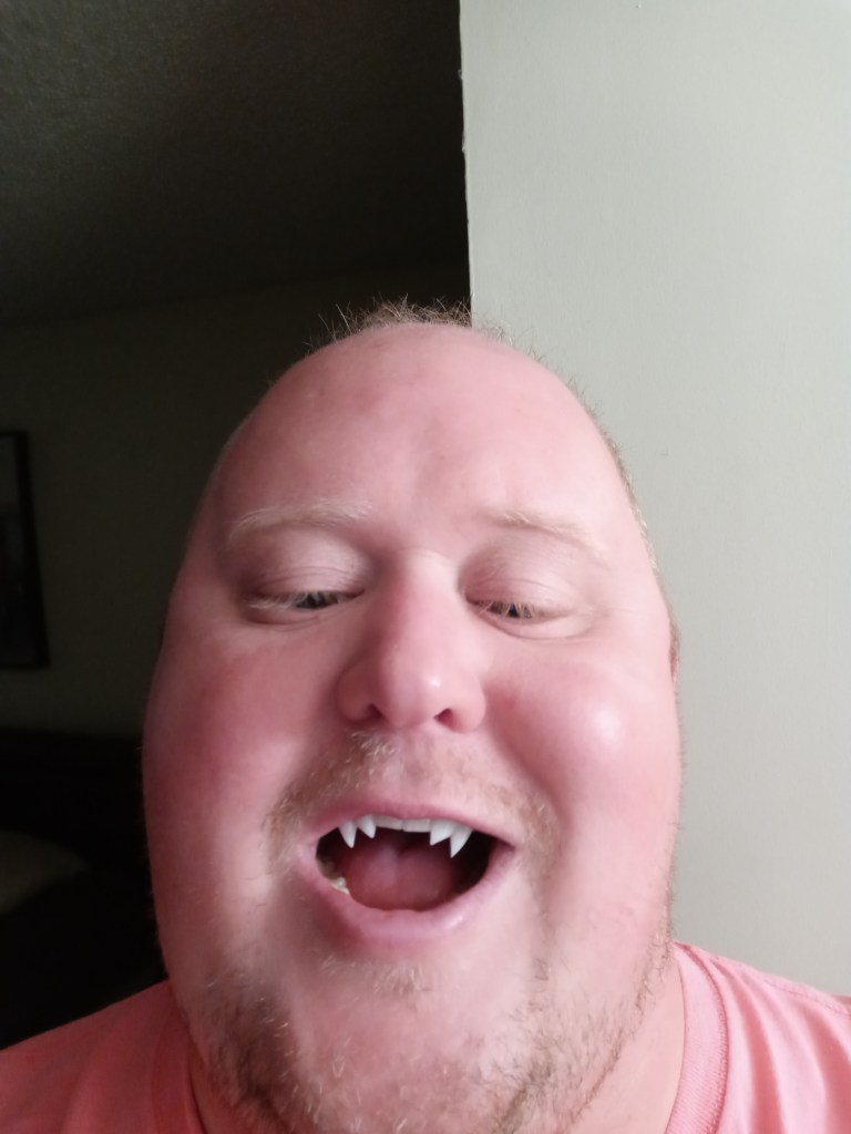 Mr. Jack Fangsmith is my fang maker, as you will see at the end of this description. He is a dentist trained fang artist with assistances from Karina an artist, painter, and designer. These two make some realistic looking fangs that will have you stand out from the crowd. During the Covid crisis they have taken to mail in orders now. The results from my pair shows the talent of these to individuals making beautiful teeth to scare your way into the memories of your horror fans for a lifetime.